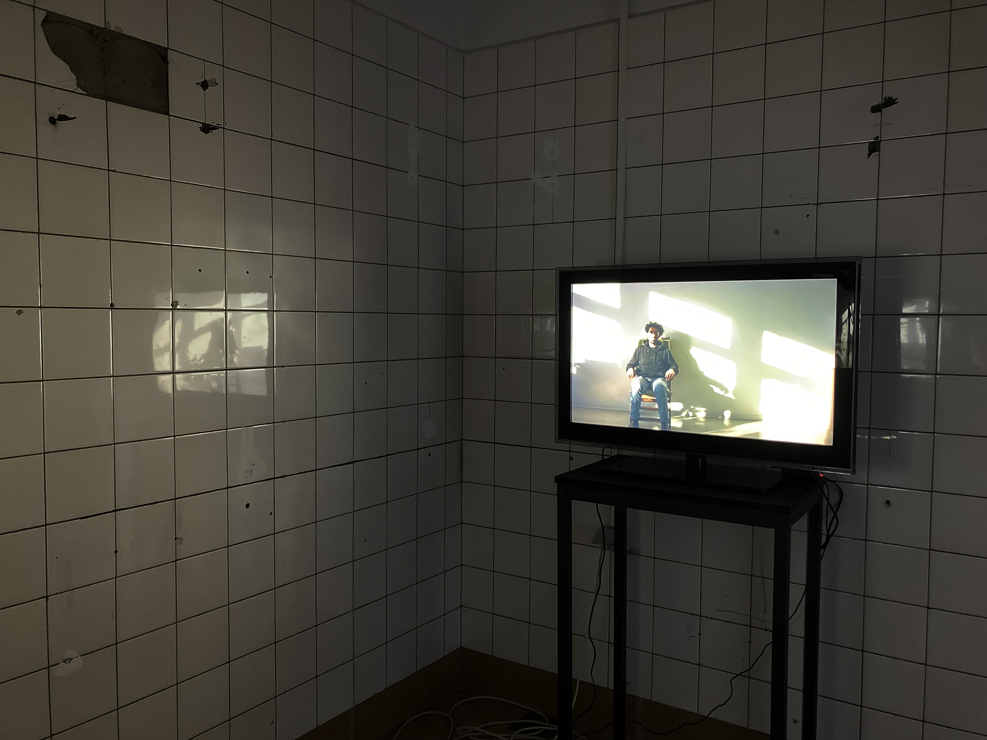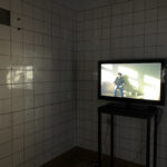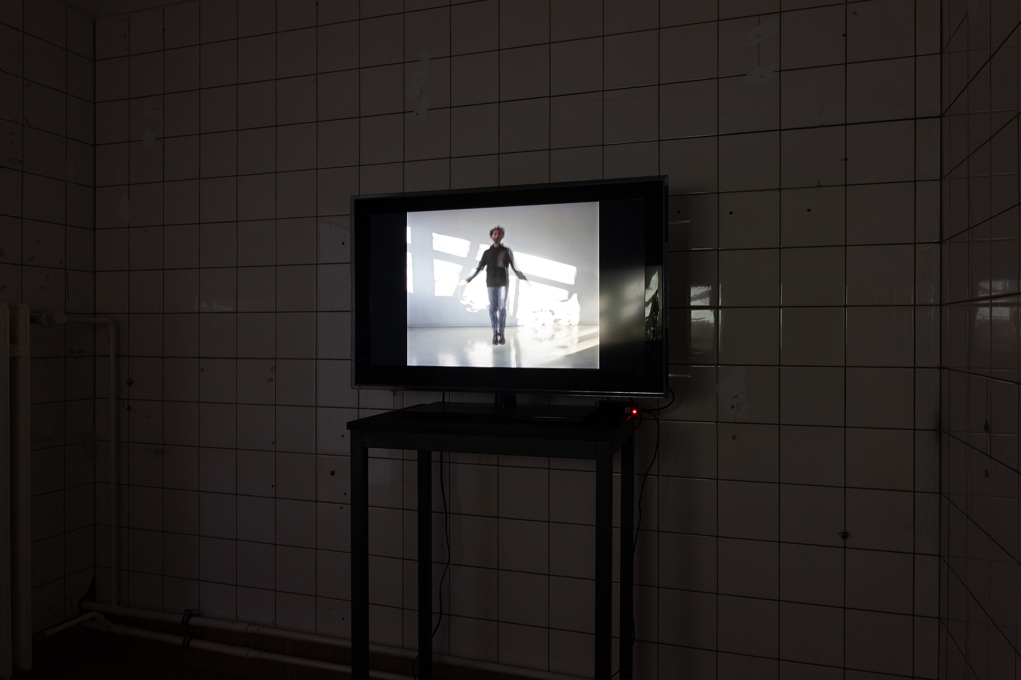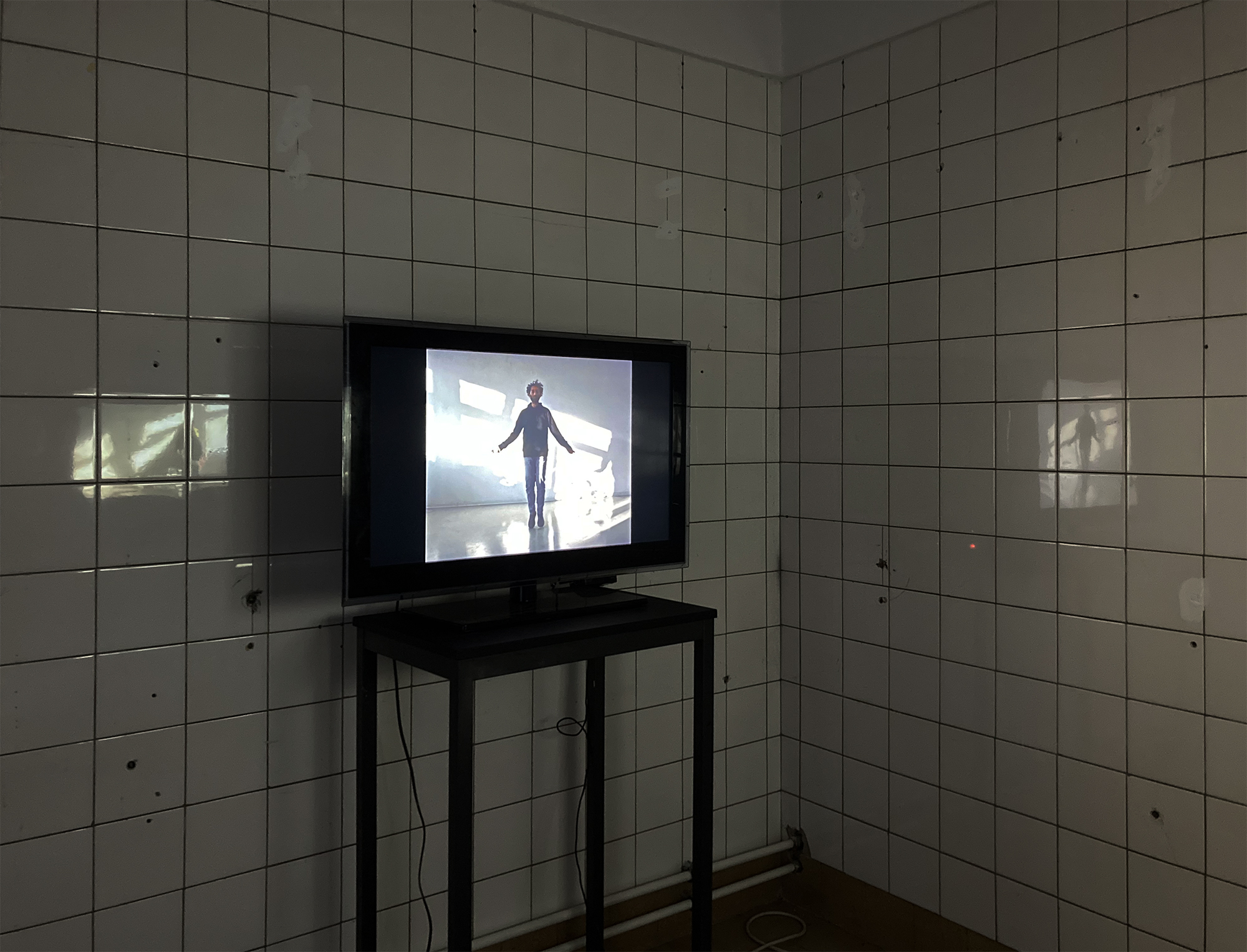 A dual-screen video installation exploring the tension between presence and absence through temporal manipulation. The first video shows the artist sitting still in meditation while fast-forwarded so the shadows are vibrating fast on clean white wall. The second video depicts rope jumping in slow, glitchy reconstituted motion, while the artist’s shadow remains nealy stationary.
